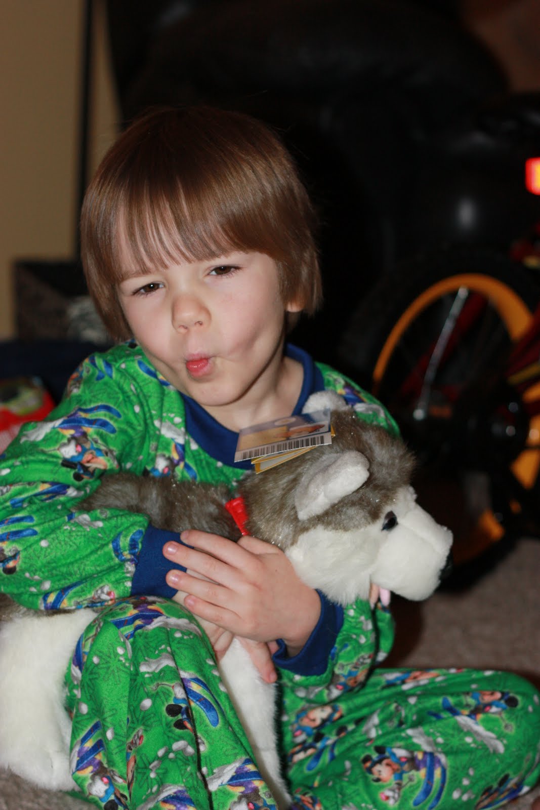 After a fun Christmas Eve with some friends we headed home and got the kids to bed. I figured we would be up super late because we had got the boys bikes and bunk beds that needed to be set up. While Chad brought the bunk bed upstairs piece by piece (it was SUPER heavy!!), I put the bikes together, and then we both headed up to get the bed put together. Well, we got all the pieces sorted out, and then realized they didn't put the instruction manual in! So we tried to find one online for about an hour and it was no existent. We finally decided to print off a picture of the bunk bed and tell the boys Santa forgot the instructions, but he would get it to us by Monday. I was SO disappointed because this was the only thing Devan really wanted. When we had talked about presents before he told me he really wanted a bunk bed. I told him if he got one, Santa probably wouldn't be able to get him very many toys. His reply was, "That's ok, I have enough toys." That coming out of a 4 year old boys mouth affirmed to me that a bunk bed was the way to go this year! So we ended up leaving all the wood pieces out in the bedroom (the boys slept in the guest room) because there was no way we were hauling them around again.